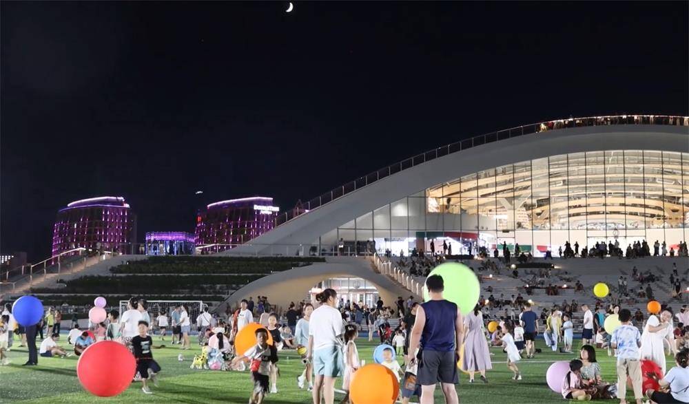 夜幕降临,在至海港湾三面临海的大操场上,来此休闲、健身的市民络绎不绝,成为夜间一道靓丽的风景线。